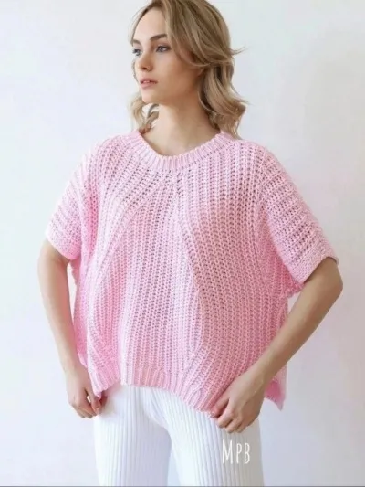 Розовый топ спицами