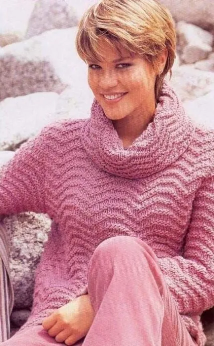 Рельефный пуловер - с воротником «хомут», вяжем спицами