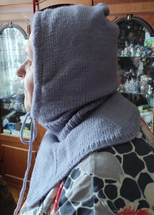 Связала капор своей знакомой бабушке. Сама в таком же хожу. Очень тепло и удобно.