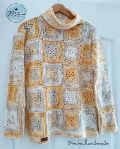 Свитер с высоким воротником, вяжем из мотива "бабушкин квадрат"