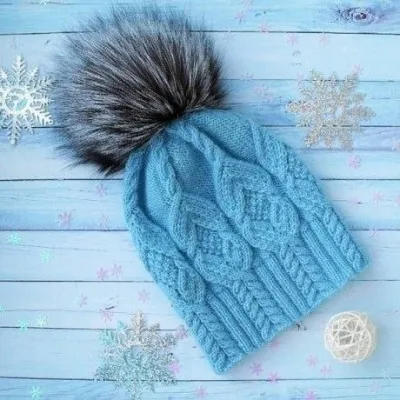 Убавления для макушки начинайте выполнять с 55го ряда: на секциях изнаночных петель провязывайте по 2 вместе изн. 10 раз вдоль ряда (по одному разу ч каждой стороны косы).