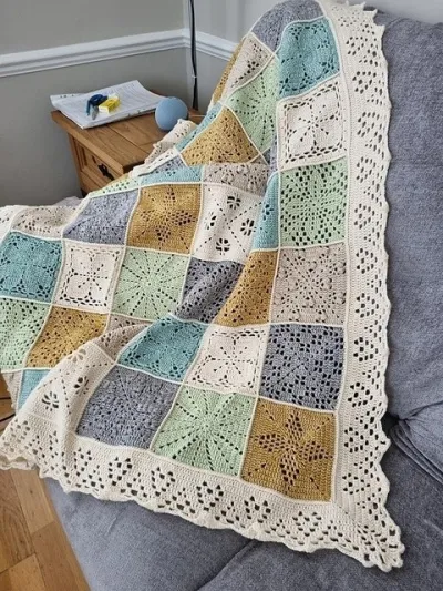 Красивый, даже изящный плед, благодаря, гармонии в выборе цветов и хорошему исполнению. Нравится. Спасибо.