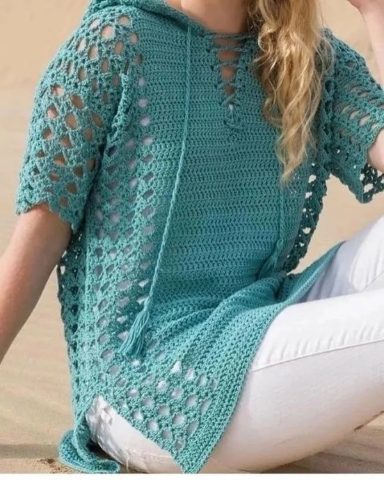 Капюшон лучше сделать плотным, тогда он защитит от солнца и мелкого дождя. Интересная и практичная модель.