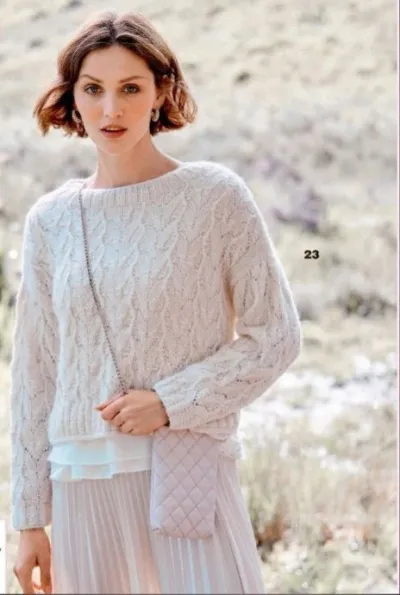Это же рубрика «Интересные идеи». Понравилась модель, пойдем искать в интернете, например, здесь https://shpulya.com/kniting/women/sweater/pulover-...