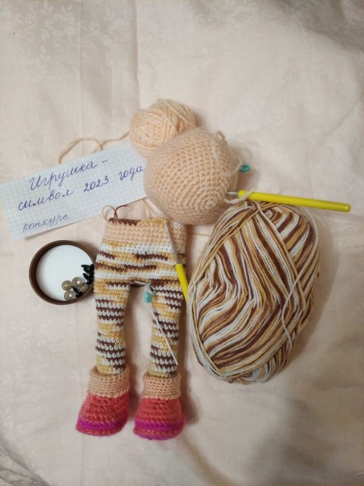 Здравствуйте! Давно хотела связать ушастую заиньку, спасибо конкурсу, подтолкнули к созданию игрушки - лапочки. Использовала разные нитки, спицы №3.5, крючки, чулочные спицы. Глазки купила готовые. Вышивала - пришивала иглой с большим ушком. Получилась заинька Розочка, я довольна. Выставляю на ваш суд, дорогие мастерицы.