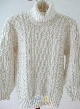 Мужской свитер связан спицами из белоснежной пряжи. Отличный подарок вашему мужчине, сделанный своими руками к Новому году. Свитер связан арановыми узорами. Свитер имеет высокий воротник, связанный резинкой. Для вязания узоров этого свитера вам также понадобится, кроме двух основных спиц, ещё одна маленькая дополнительная. Этот свитер не прост в исполнении, но затраченный усилия окупаются великолепным результатом, в виде эксклюзивного свитера ручной работы. Со схемами арановых узоров для вязания свитера, вы можете ознакомится далее.
