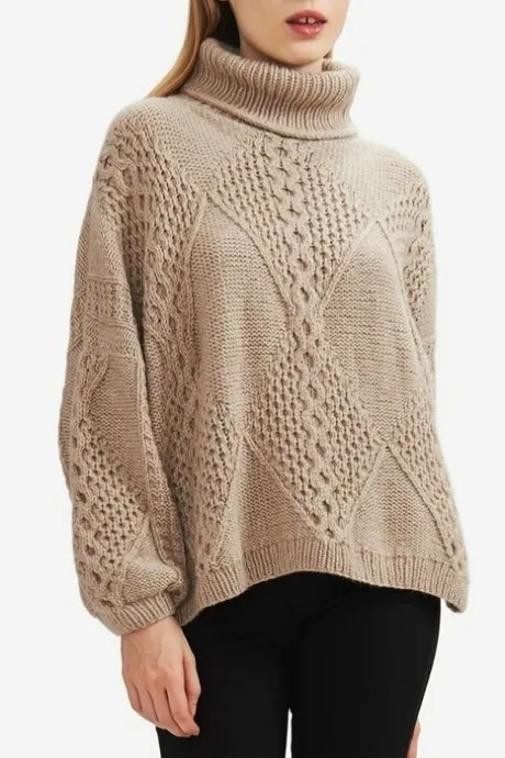 Основной узор - очень крупные ромбы. Их раппорт в ширину - петли с 13 по 50, в высоту - с 1 по 64 ряд.