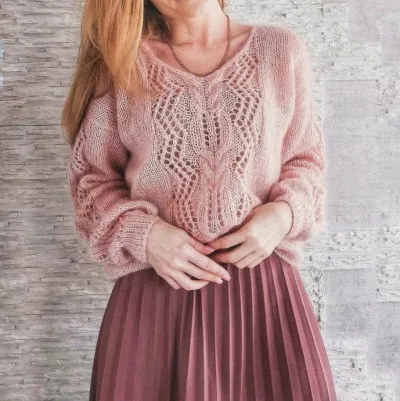 Джемпер спицами с узором N° 126 из книги японского дизайнера Хитоми Шида