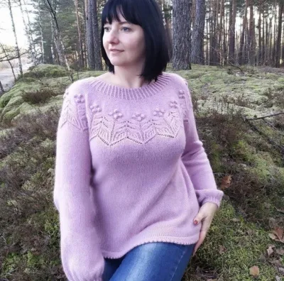 Джемпер с красивой кокеткой спицами
