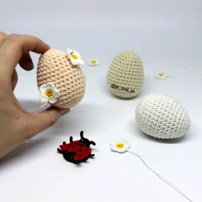 Из ниток YarnArt Jeans у меня получились яйца около 8 см.