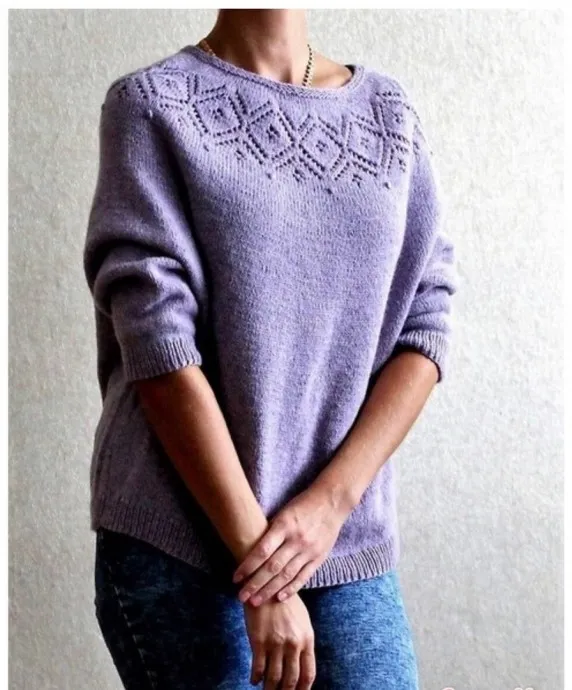 И фото, и описание, и схема узора с обозначениями, и чертеж джемпера — полный комплект!