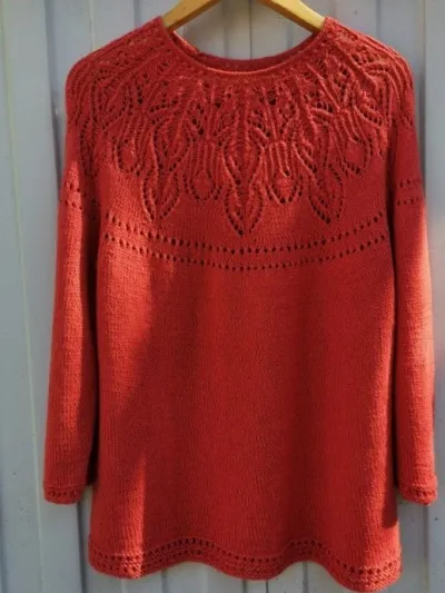 Джемпер с ажурной кокеткой спицами