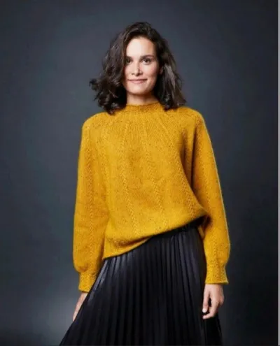 Джемпер горчичного цвета, модель с круглой кокеткой
