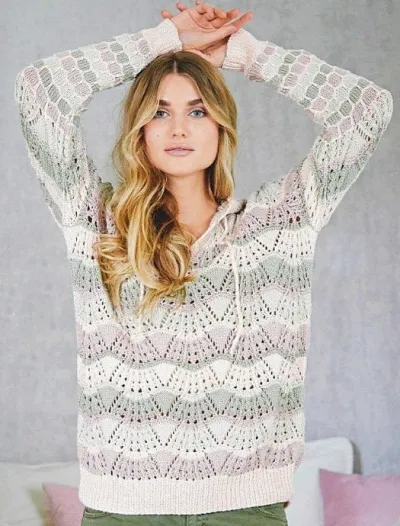 Джемпер с разноцветными ажурными полосками