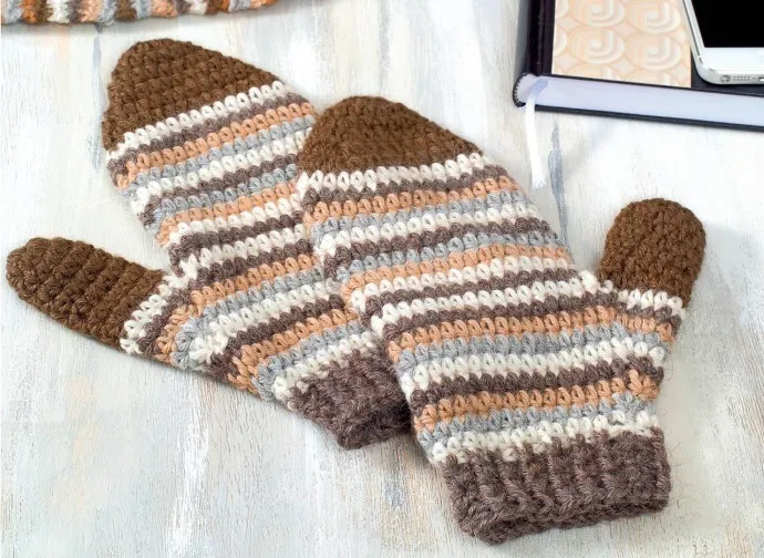 для варежек, по 10 г белой, светло-коричневой, бежевой и серой;