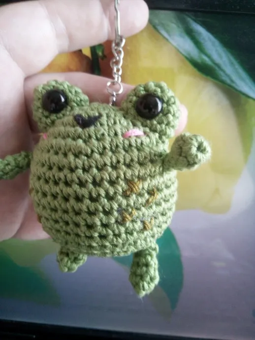 Лягушонок-брелок очень милый и забавный. Цвет на самом деле насыщенный, яркий. Можно такую игрушку прицепить на сумочку, рюкзачок, повесить в авто или на рабочем месте, ведь лягушка- символ богатства и удачи. Размер лягушонка около 8 см. Колечко с цепочкой на маленьком карабинчике, отстёгивается. Могу связать таких ребятишек в разных цветах и размерах.