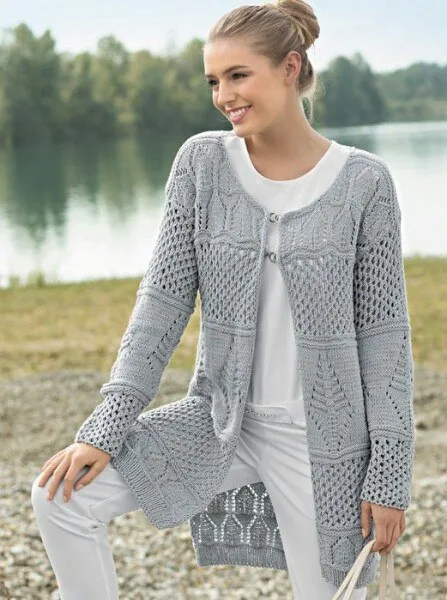 Удлинённый кардиган с сочетанием узоров (и для статных дам)