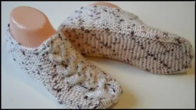 Бесшовные двухцветные следки с косой на двух спицах – вяжутся очень просто!