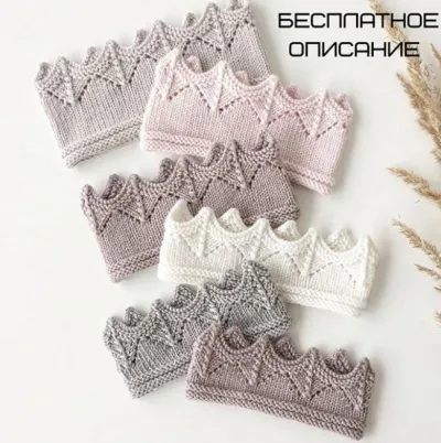 Далее вяжем несколько рядов лицевыми петлями, в зависимости от того какой высоты вы хотите корону, 2 ряда изнаночными, 2 ряда лицевыми и 2 ряда изнаночными. Все - закрываем петли, прячем кончики, стираем и готово