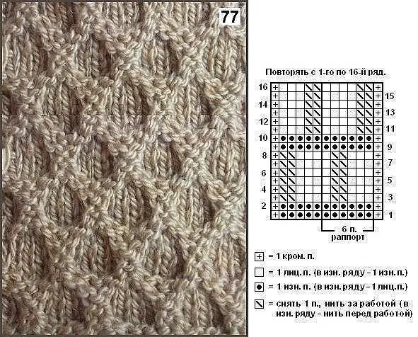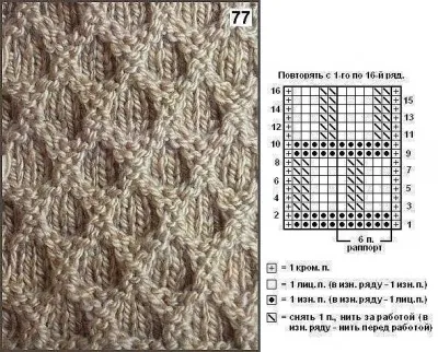 Немного странная схема: смущают эти значки "\" — если всё время снимать (не провязывая!!) петли и в изнаночных, и лицевых рядах, то вязание будет стянутым… Но… Надо попробовать: возможно, что я и ошибаюсь...