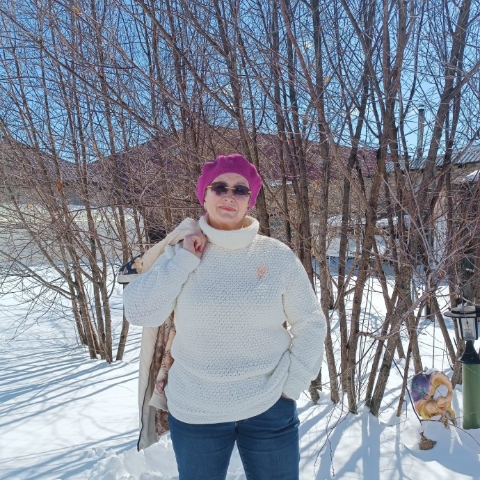 Здравствуйте дорогие вязальщицы и гости - любители вязанных изделий, представляю свитер, просто классика, но необычность в том, что резинки я выполнила простой платочной вязкой, основное полотно "Тканый" узор. На 50- 52 размер ушло 680 грамм, спицами №3, пряжа стоковая, метраж, состав не известен. Вязала плотненько, чтобы было тепло. Плечевые скосы и вырез горловины вязала укороченными рядами, петли не закрывала оставляя на вязальной булавке. В дальнейшем выполняла плечевой шов по открытым петлям без рабочей нити и потом уже вязала горловину. Свитер получился очень теплый, уютный, дома на фото показывает желтизну, а на улице видна белоснежность.