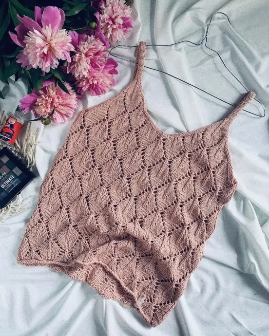 Топ с узором "Листья", вяжем спицами