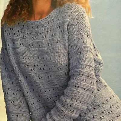 Изюминка этого нежнейшего джемпера в узоре, который сейчас очень актуален. Выполнить его достаточно просто, ведь он состоит из чередования полос лицевой глади и ажура. Подобное изделие можно было увидеть на Шеин, но к сожалению, сейчас заказать его нельзя. Поэтому предлагаю вам связать джемпер самостоятельно. Я вам подробно опишу ход работы. А вы можете поэкспериментировать с расцветкой.