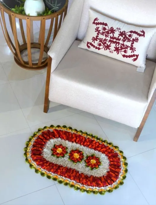 Красиво! Очень яркий коврик. Мне он кажется похожим на цветы бархатцы