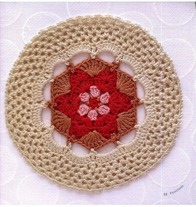 Вдохновением для создания этой мандалы послужили замысловатые оконные решетки во дворцах Раджастхана, Индия. Почти волшебно видеть, как круг в центре превращается в звезду, а затем в шестиугольник.