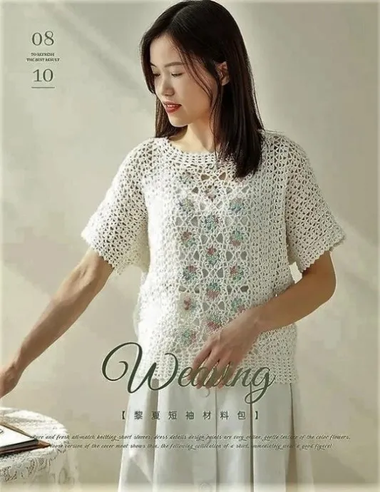 Джемпер с коротким спущенным плечом, вяжем крючком