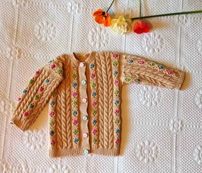 Наконец готова и кофточка для младшей сестренки! Отличие от старшей кофточки — вместо шишечек вышивка и немного изменила рисунок. Получился детский Фэмили лук (family look). Кофточка для девочки на размер 1-1,5 года. Подробности в первом топике https://www.knittingideas.ru/posts/41265-koftochka-po-motivam-filma-priklyuchenija-teddi.html