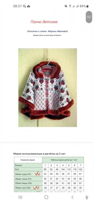 МК описание, выкройка,схемы, ссылки на видеоуроки. Пончо детское.