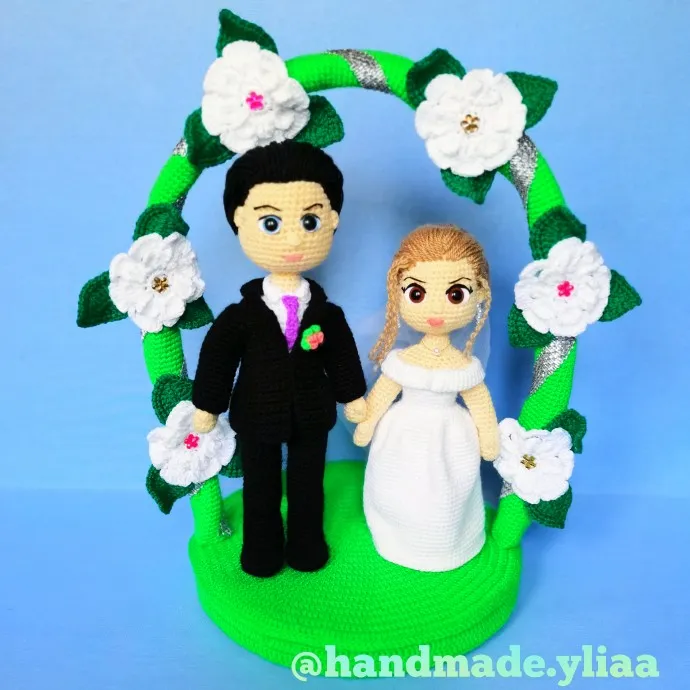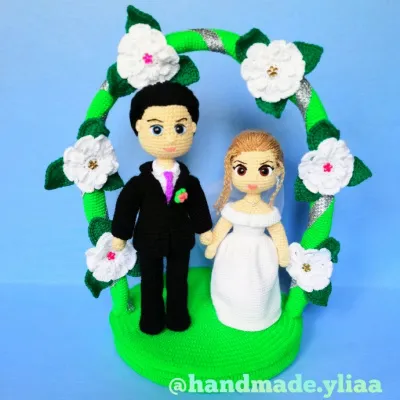 Вот такая свадебная композиция у меня получилась. Попросили связать на годовщину свадьбы.
