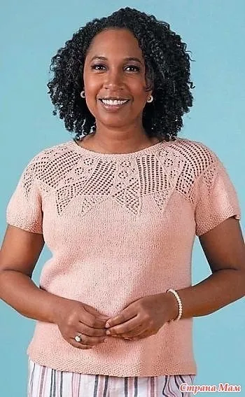 Футболка «Branchport Cottage» с круглой кокеткой, вяжем спицами