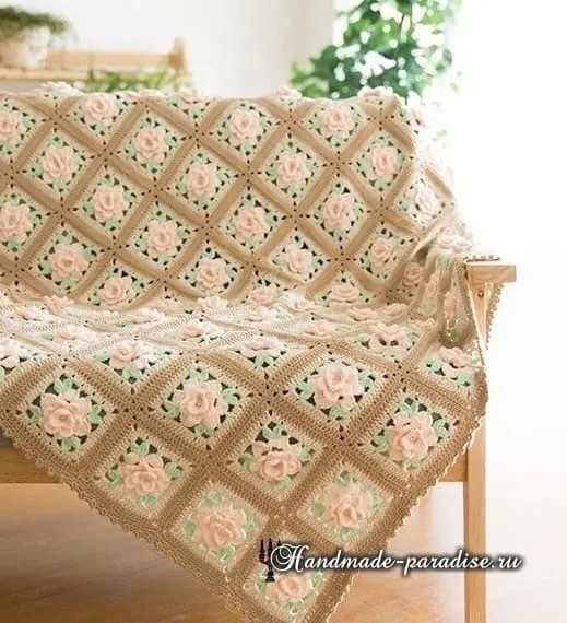 Эффектный плед с розочками