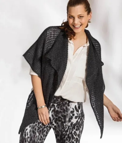 Пряжа (72% мохера суперкид, 21% нейлона, 7% люрекса; 167 м/25 г) – 150 г серебристо-антрацитовой; круговые спицы № 5.