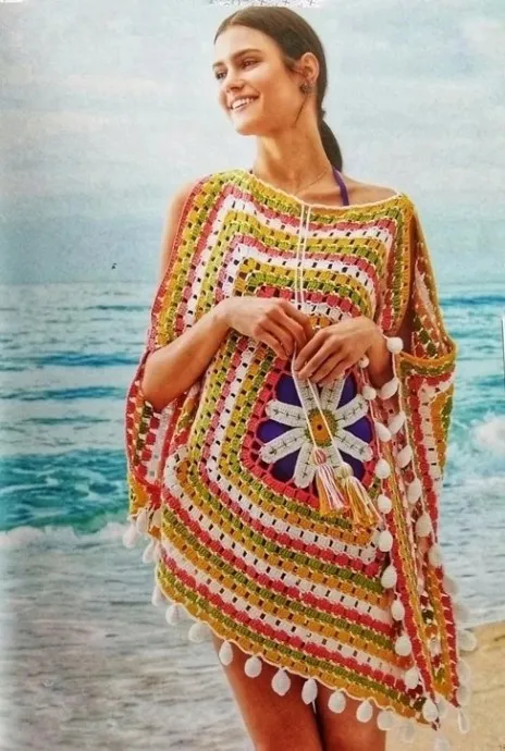 Летнее пончо из мотива крючком