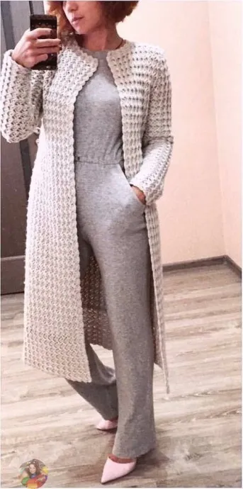 Длинный кардиган, вяжем крючком