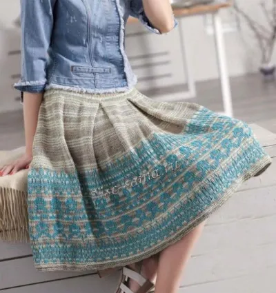 за работой » петли лежат друг за другом в виде складки перед следующими 10 п. на левой спице; теперь провязать 10 раз вместе лицевыми по 1 п. с 1-й вспомогательной спицы, по 1 п. со 2-й вспомогательной спицы и по 1 п. с левой рабочей спицы; следующие 10 п. отложить на 1-ю вспомогательную спицу за работой, следующие 10 п. отложить на 2-ю вспомогательную спицу перед работой - петли лежат друг за другом в виде складни за следующими 10 п. на левой спице: теперь провязать 10 раз вместе лицевыми no 1 п. с левой рабочей спицы, по 1 п. со 2-й вспомогательной спицы и по 1 п. с 1-й вспомогательной спицы; 15 (20-25-30) п. лицевой глади, от * повторить 2 раза - 180 (200-220-240) п. Через 2 см - 5 р. от ряда со встречными складками равномерно убавить 50 п. - 130 (150-170-190) п. Через 5 см -12 р. от ряда с убавками провязать 1 р. изнаночными - сгиб и еще 5 см - 13 р. лицевой гладью. После этого закрыть оставшиеся 130(150-170-190) петель.