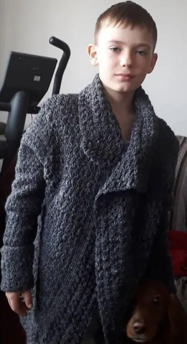 Так мало одной фотографии, трудно все рассмотреть, хочется больше информации об изделии, но видно, что молодой человек доволен!