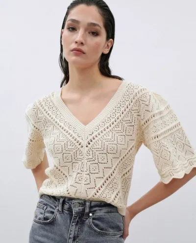 А на полочках, если имеется в наличии красивый бюст (более 2 размера), надо или посадку в районе нагрудных вытачек сделать (потом её сутюжить) или просчитать и вывязать их, но это гораздо сложнее и муторнее.