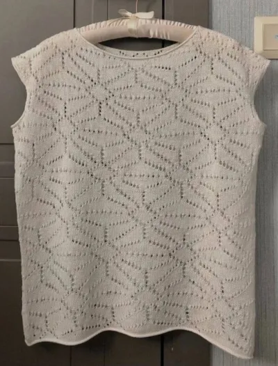 Оригинальная идея! Пока не увидела фото поближе, думала, что это — крючок! — маленький экран смартфона не позволил сразу увидеть, что это — спицы! Замечательная идея! Но если фигура не плоская, нужны нагрудные вытачки, которые узор позволяет сделать незаметными!