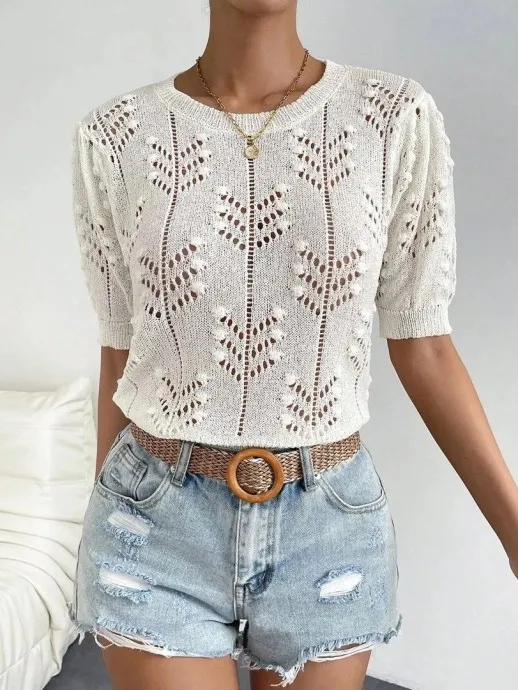 Джемпер с коротким рукавом, вяжем спицами