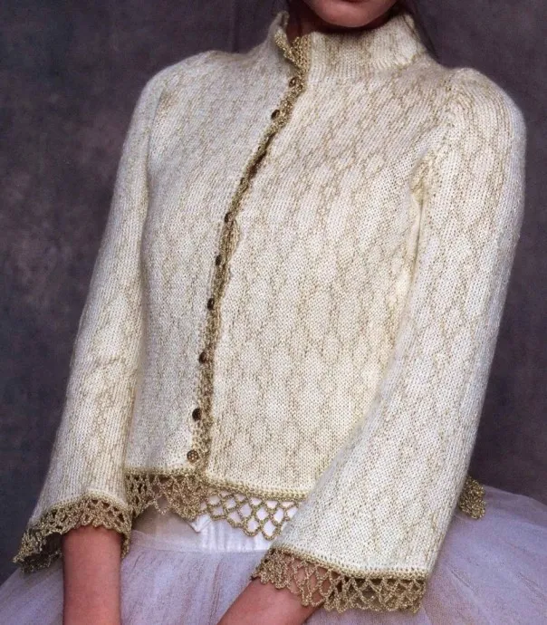 Спицы+крючок: жакет, связанный спицами жаккардовым узором. Отделка - крючком