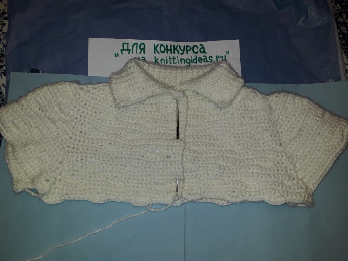 3. Реглан вяжем сверху от воротника. Перед петлей пагона вывязываем 3 п.из 1. Провязываем петлю пагона. Я провязываю рельефным столбиком.для удобства.