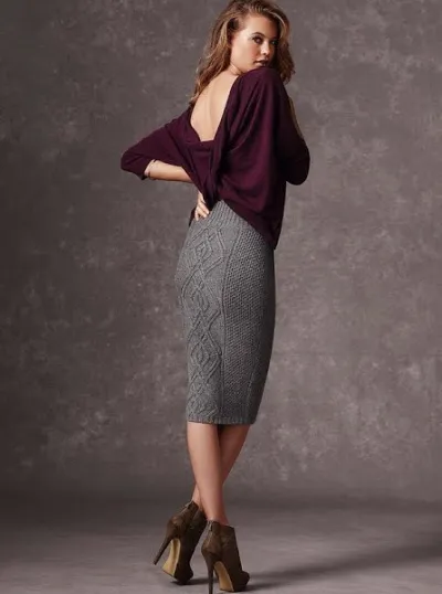 Кто сказал, что простые вещи не могут стильно смотреться? Взгляните на эту вязаную спицами юбку с центральным узором. Ее очень просто вязать, но выглядит она весьма интересно.