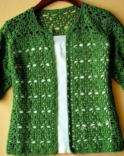 Жакет с коротким рукавчиком крючком, вяжем крючком