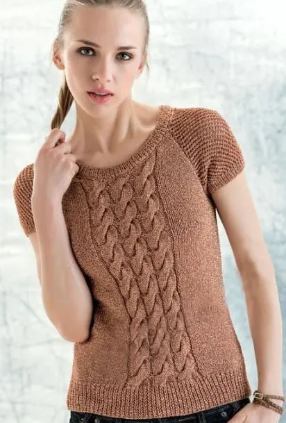 Футболка (джемпер с коротким рукавом) с косами и рукавом реглан