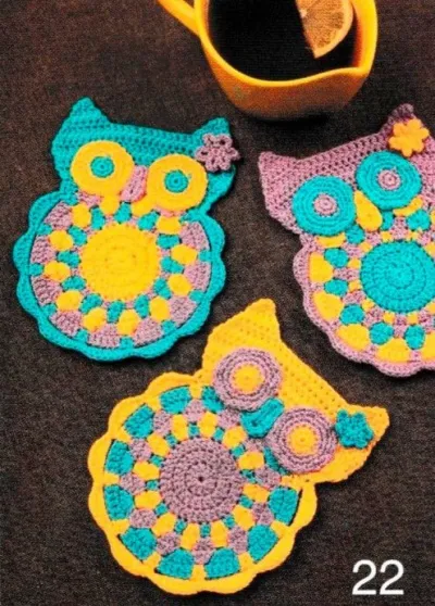 Вяжем яркие подставки "Совушки" для чашек/стаканов