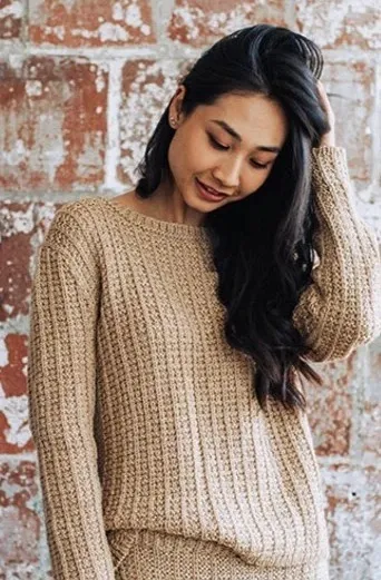 Вам понадобится: пряжа LION BRAND BASIC STITCH ANTI-PILLING™ (арт. № 202) оттенок 121 «миндаль» - 6 (6, 7, 8, 9, 9) мотков<; спицы 4,5 мм; круговые спицы 4,5 мм длиной 40,5 см